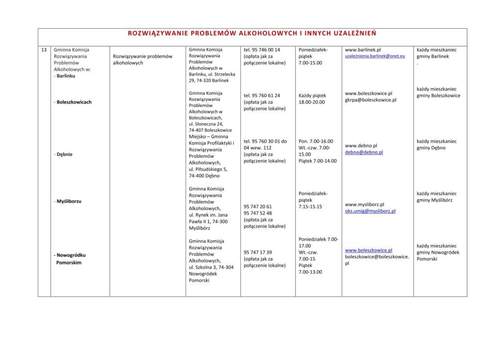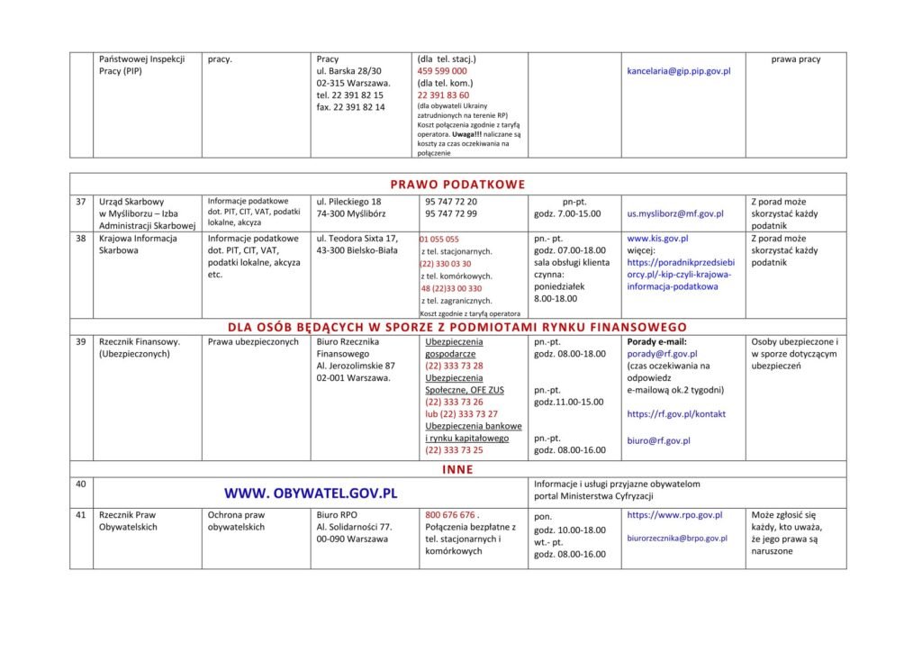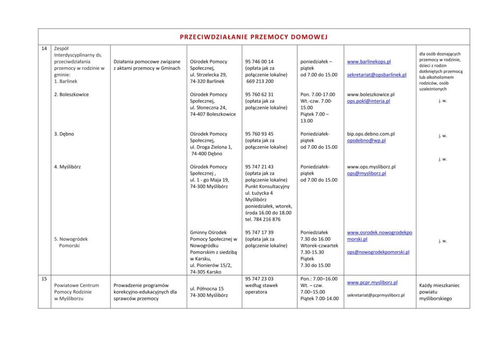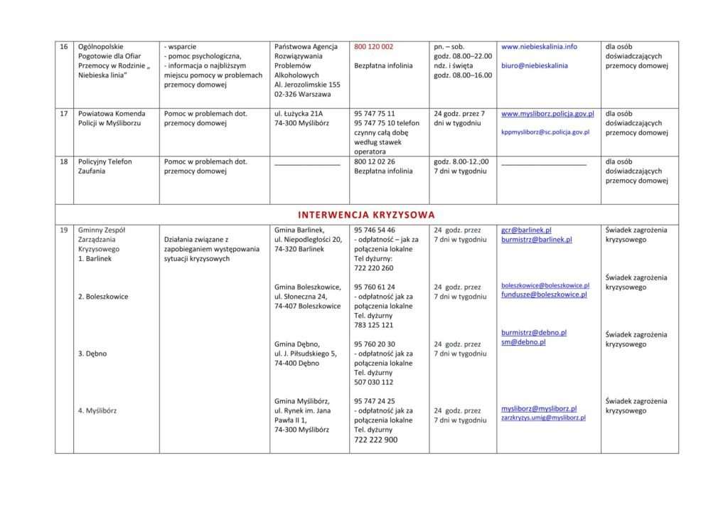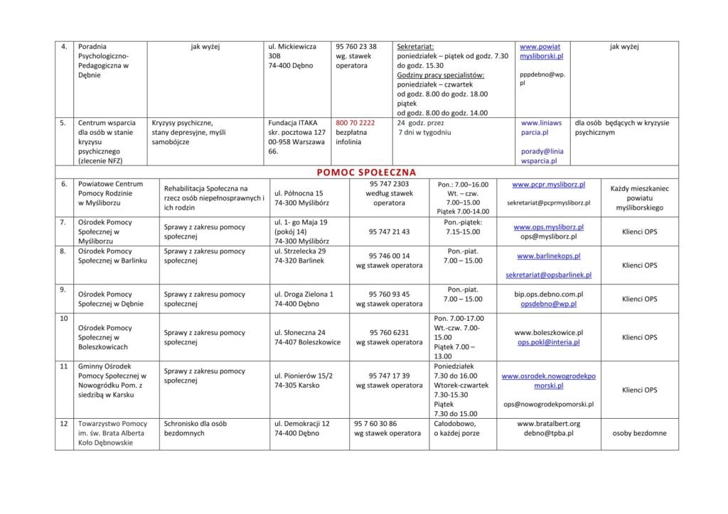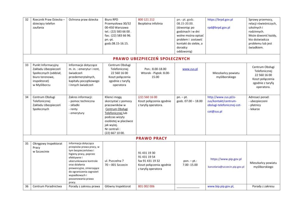 LISTA JEDNOSTEK NIEODPŁATNEGO PORADNICTWA DLA MIESZKAŃCÓW POWIATU MYŚLIBORSKIEGO